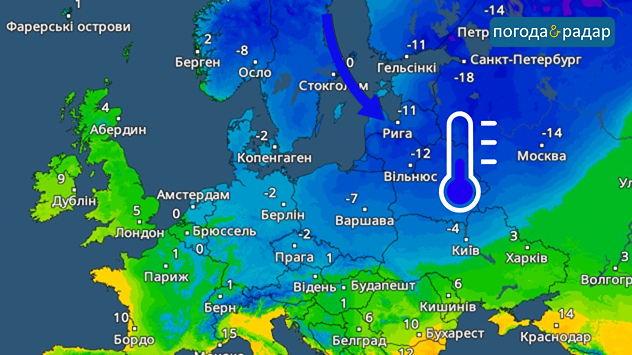Температурний радар: у деяких регіонах Східної Європи на вихідних буде дуже холодно. В Києві також прогнозуються мінусові температури.