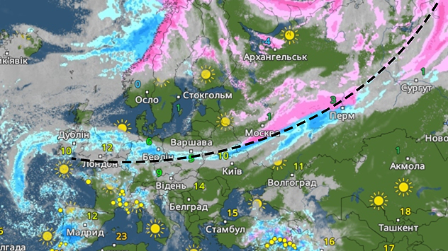 Погодний фронт від Атлантики до Сибіру