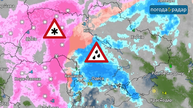 Радар Погоди на 8 січня: від снігу до льодяного дощу.