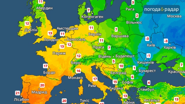 Навіть у Польщі, Чехії, Словаччині та Данії спостерігається значне підвищення температури, хоча й у межах однозначних значень. Від країн Балтії до східної Румунії температура буде лише трохи вище нуля. В Україні плюсові значення очікуються на заході й південному сході, а в центральних і північних регіонах - мороз.