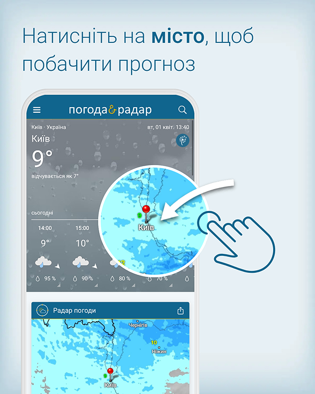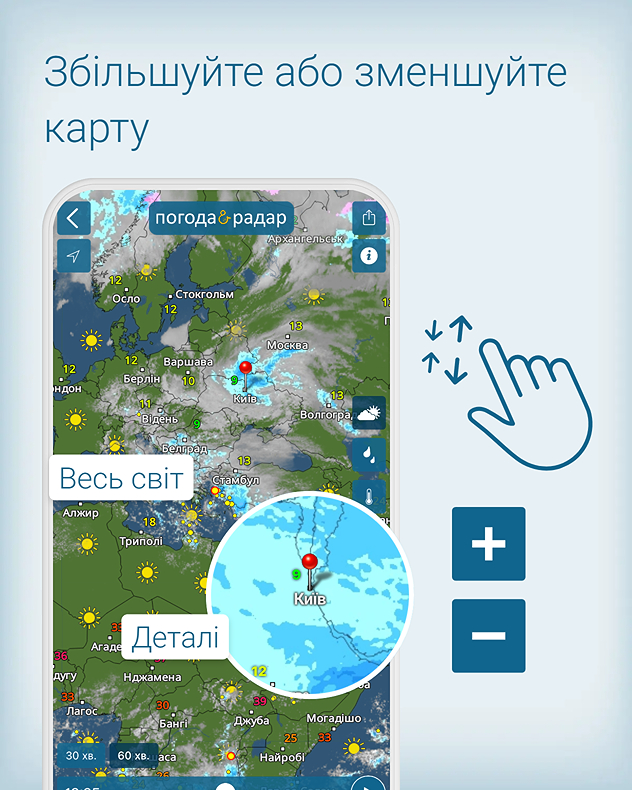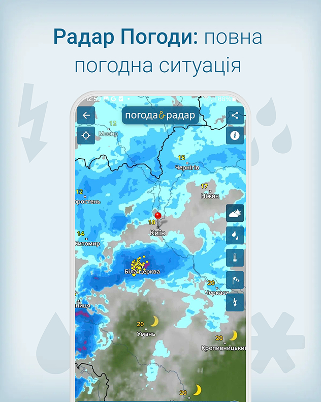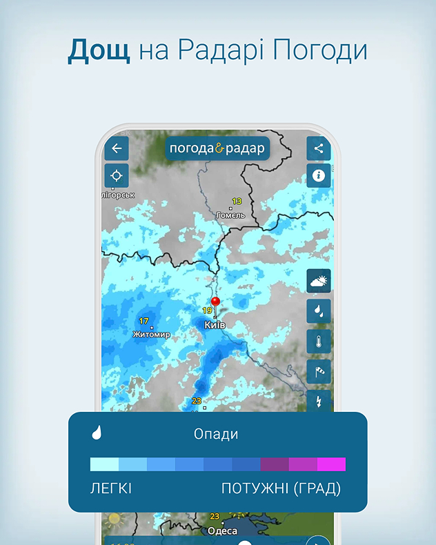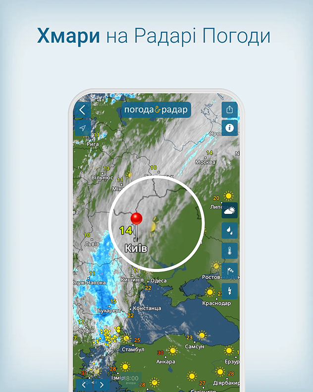 Радар Погоди показує всі важливі погодні явища з одного погляду — і це для будь-якої точки на Землі. Ось як це працює:
