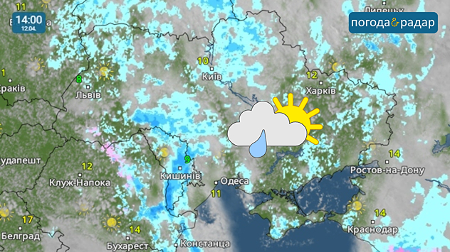 Радар Погоди: у неділю погода буде мінливою, в більшості регіонів очікуються слабкі дощі.